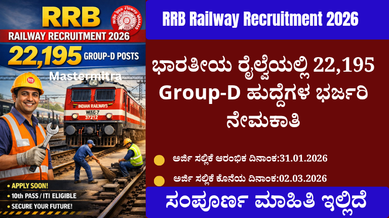 RRB Railway Recruitment 2026: 22,195 Group-D ಹುದ್ದೆಗಳ ಭರ್ಜರಿ ನೇಮಕಾತಿ – ಸಂಪೂರ್ಣ ವಿವರ ಇಲ್ಲಿದೆ. RRB Railway Recruitment 2026: ರೈಲ್ವೇ ಇಲಾಖೆಯಲ್ಲಿ ಸರ್ಕಾರಿ …